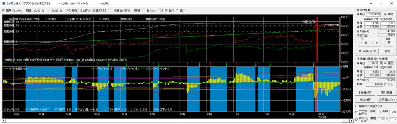 以上が、1月22日~2月4日の間に手仕舞いした銘柄ペアと、