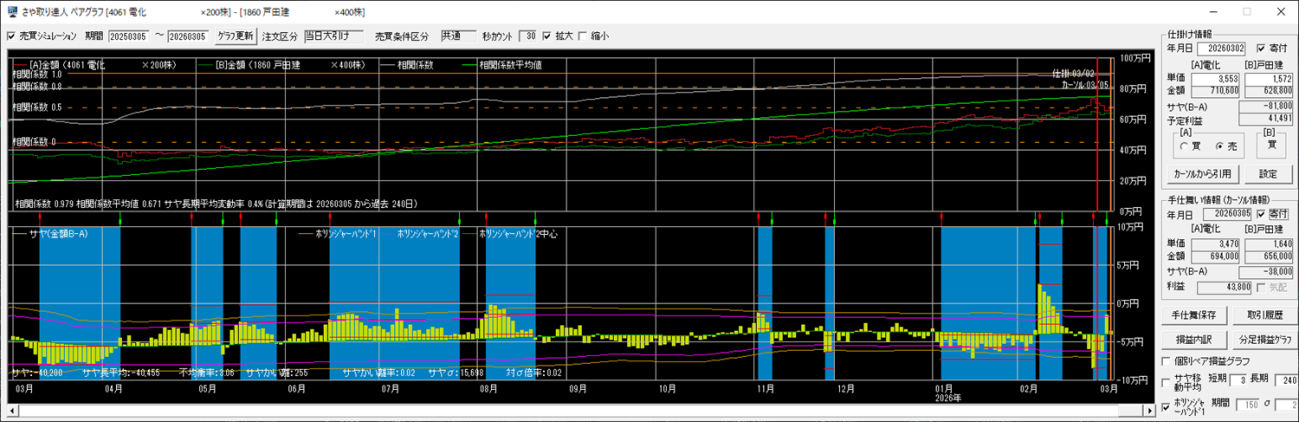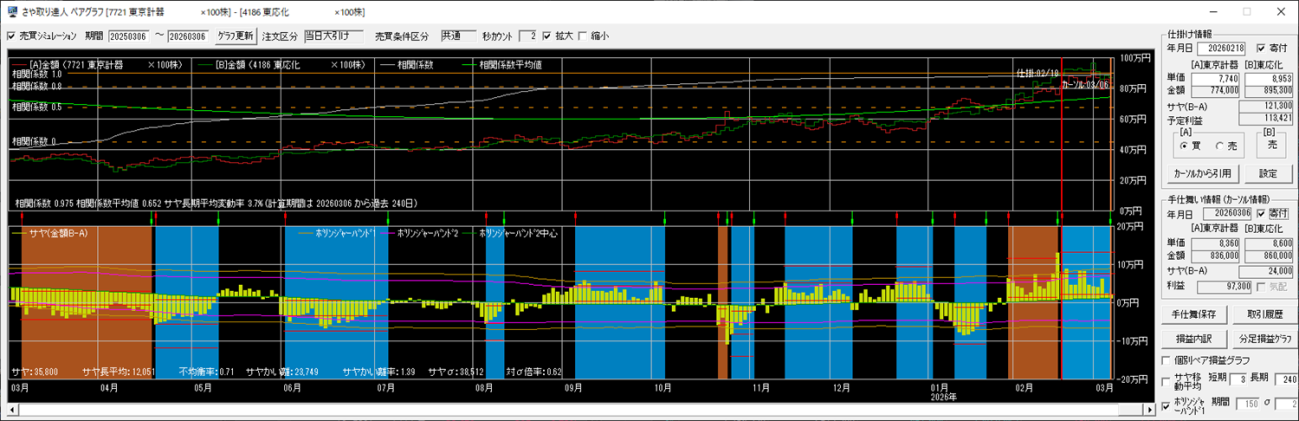 以上が3月05日~3月18日の間に手仕舞いした銘柄ペアと、